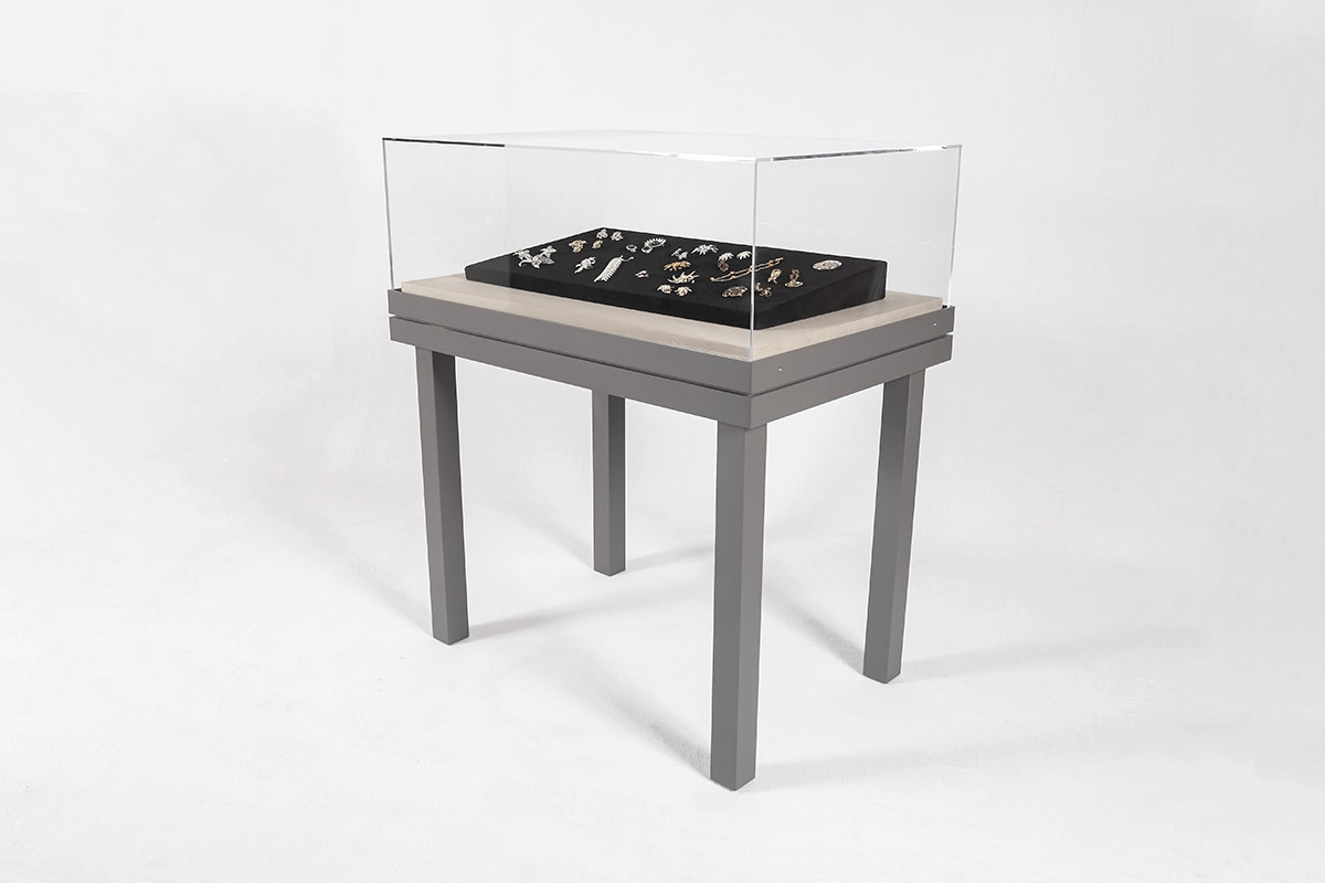 The D-200’s 5-sided, acrylic vitrine can be lifted off for access to objects and is secured to the aluminum collar with screws. An archival silicone gasket creates a seal between the vitrine and the case frame. We manufacture museum-quality acrylic vitrines from clear or UV-filtering acrylic and are one of the few companies to manufacture museum-quality Optium Museum Acrylic® vitrines