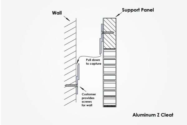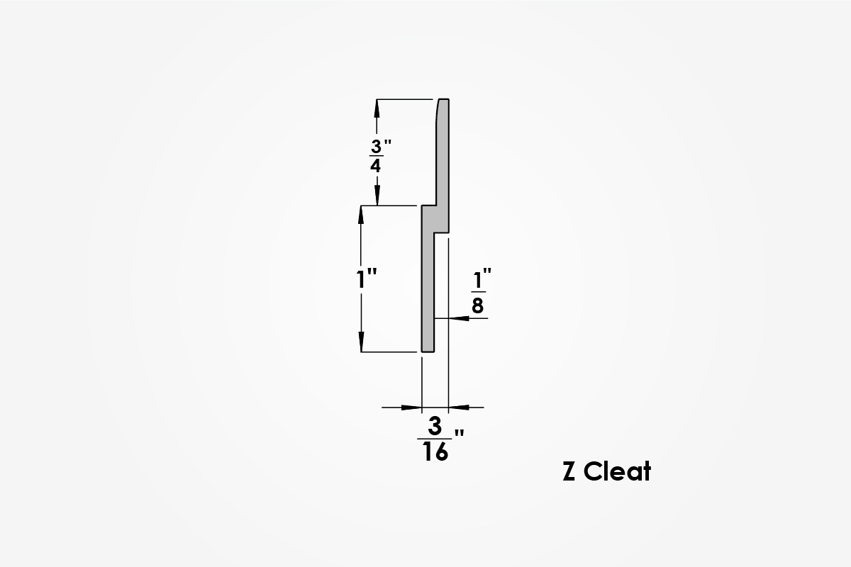 Aluminum Z cleats, also commonly known as Z Clips or French Cleats, are a no-show and secure installation method for artwork, panels, and more. Z Cleats interlock with each other, making them easy to change, and don’t require visible screws or hardware, just attach one piece to the back of your artwork or panel and attach the other piece to the wall. Aluminum cleats are archival and non-corrosive, making them stable in any environment. We offer two types of aluminum Z cleats.