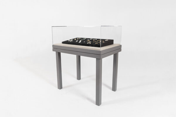 Part of our line of table cases, the D-200 case is a perfect choice for easy transport and compact storage. This sealed, microclimate case includes removable (round or square) legs, a powdercoated aluminum collar, and an acrylic vitrine, making it a popular choice for temporary exhibits. Our cases are based on standard designs manufactured to customers’ size requirements.