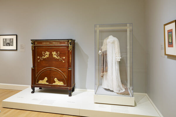 Part of our line of mannequin cases, the M-100 is an attractive, secure, and affordable museum display case. The M-100 is not sealed or archival, but it will protect your textiles from dust and visitors. The 5-sided vitrine includes a removable panel for access to objects. Our cases are based on standard designs manufactured to customers’ size requirements.