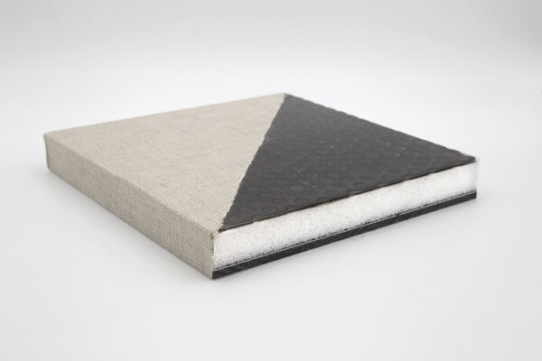 Consisting of a rigid 4mm aluminum composite layer, nine-pound pinnable Ethafoam™, powdercoated perforated steel, and wrapped in archival linen, Super Panels are our most versatile exhibit panel. These archival panels are both pinnable and magnetreceptive, providing curators and exhibition staff with a range of installation options and are especially useful for frequently changing exhibits. Super panels are used in frames and exhibit cases, and can be hung on the wall as a stand-alone mount. Super panels are easily outfitted with cleats or other hanging systems and can accept most mounts.