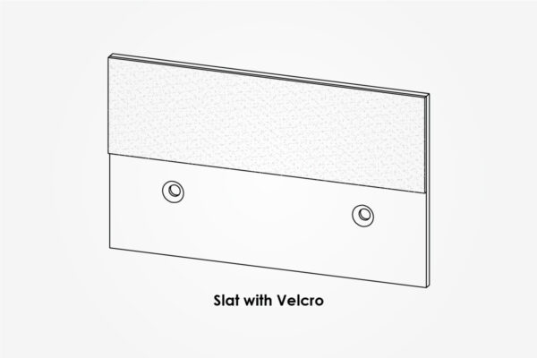 Our slats are 3” tall x 1/8” thick and come with 2” wide hook Velcro® adhered to one side of the slat. Neutral-curing, two-part epoxy is used as the adhesive.