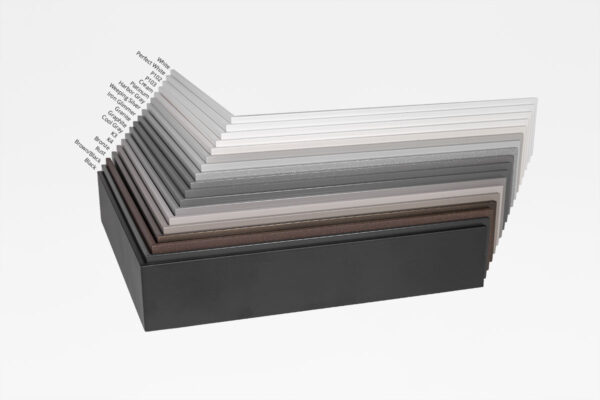 We also offer brushed sides and face, random orbital (RO) sanded exterior finish, and in addition to the classic black-painted interior, we offer a white-painted interior as an option.  We do not brush, polish, or apply a sanded finish on the interior of our floater frames.  We do, however, offer 18 different powdercoat colors if you would like the same finish inside and out.