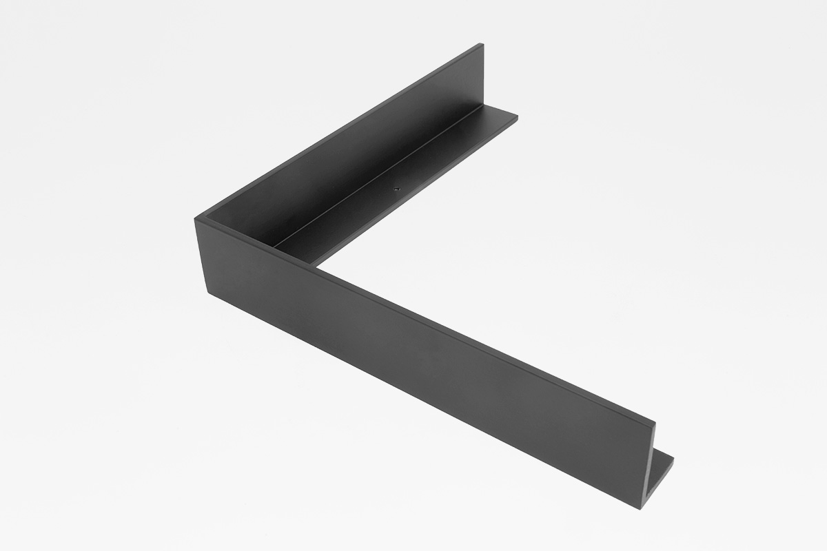 One of our six standard aluminum floater frame profiles that allows you to mount your canvas or panel-based artwork with a perimeter gap giving it that “floating” look. Show off both the front and the sides of your artwork based on the float/gap you choose. Your art attaches to the frame by screwing our floater frame onto the back of the stretcher. Consult the finishes section for what interior color options we offer.
