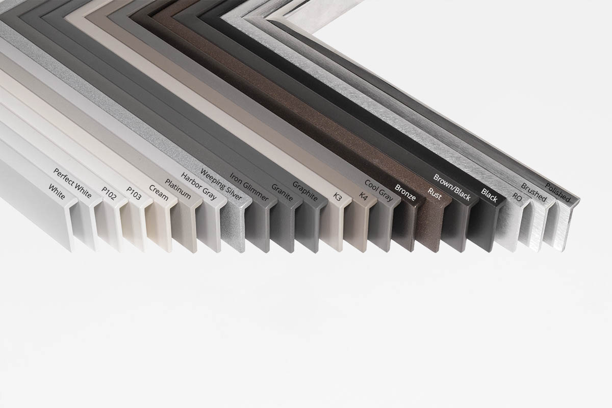 Our finished corner picture frames are made to your size requirements and include a 1/16” allowance. You may choose from our ten standard profiles or send us your ideas. We can trim our standard profiles, or order specialized materials for your project.  There are maximum sizes for some of our frame profiles, but we are well known for making very large picture frames. Just ask.