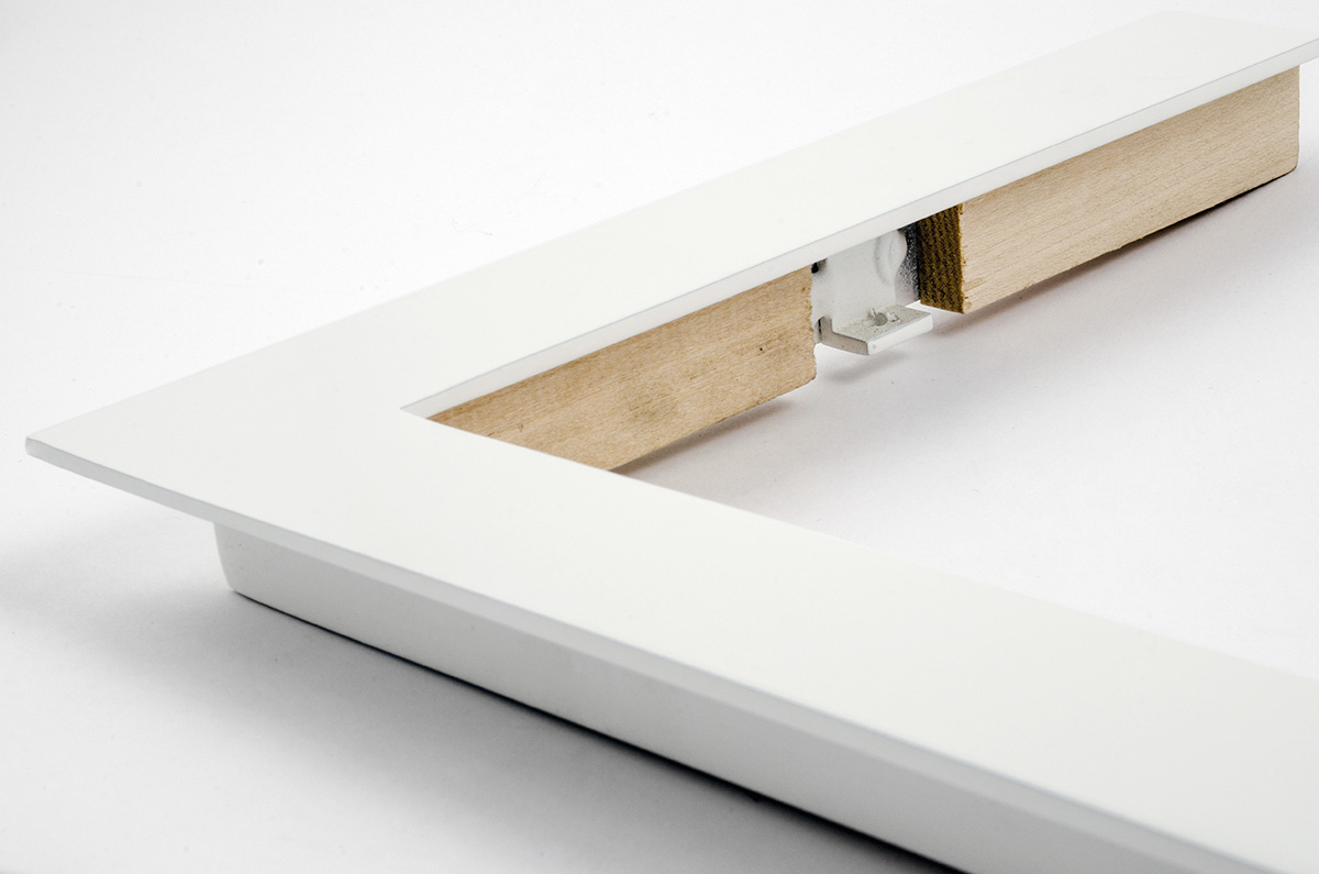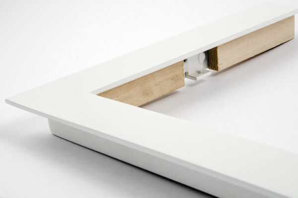 One of two standard T Frame profiles designed to complement your artwork. Each frame is custom made to your size specifications, and finished by hand, by one of our talented craftspeople. We offer an array of finishes and can accommodate a broad size range. TIG 40 frames come with an installed poplar liner (not structural) and hanging tabs. You will need to specify the hanging orientation when ordering.