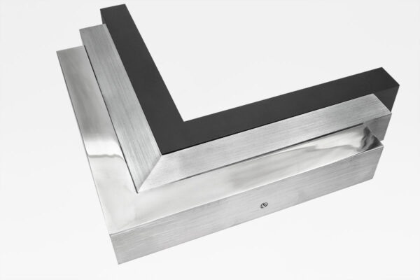 The classic finish has brushed (grained) sides with a mirror-polished face.